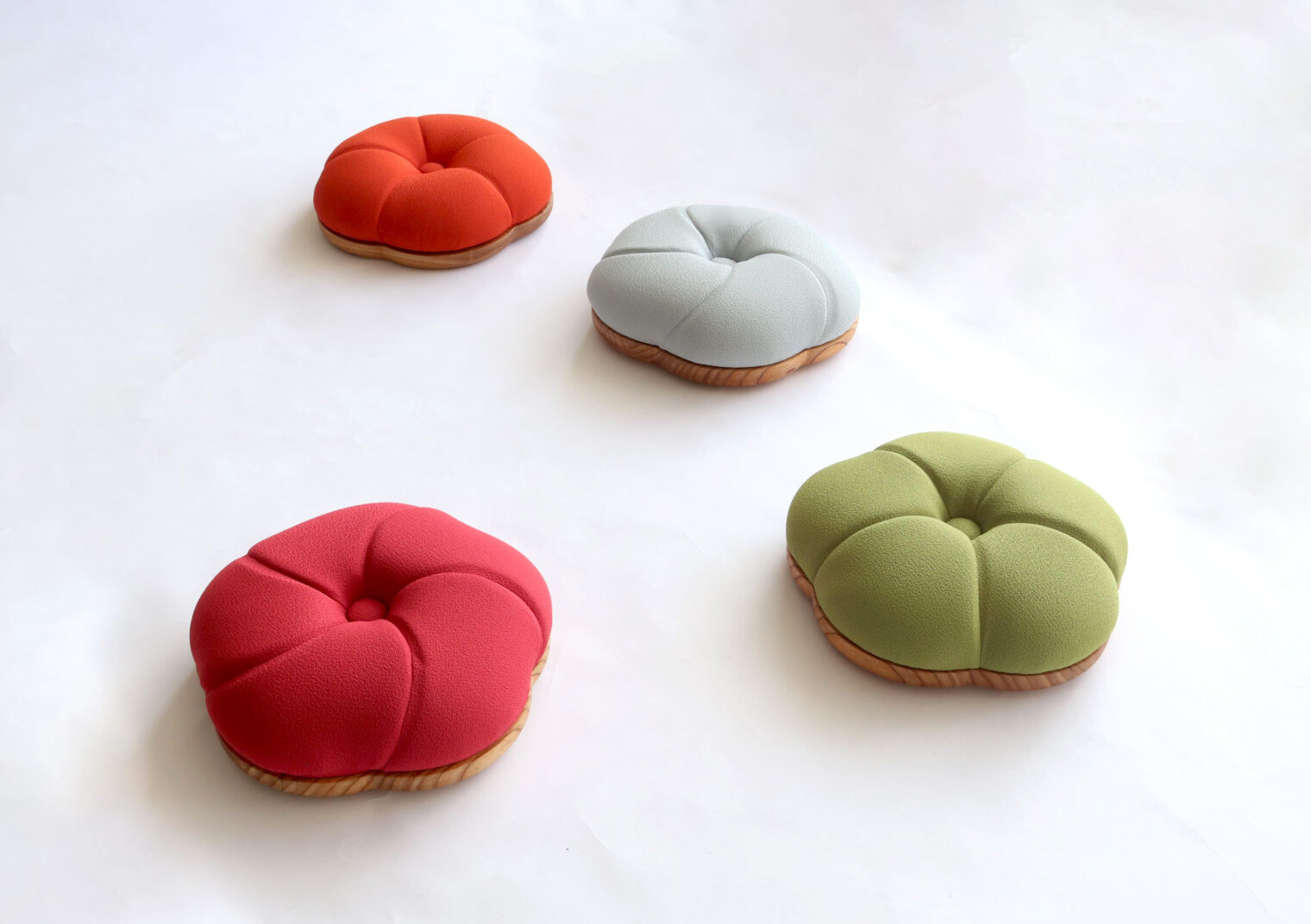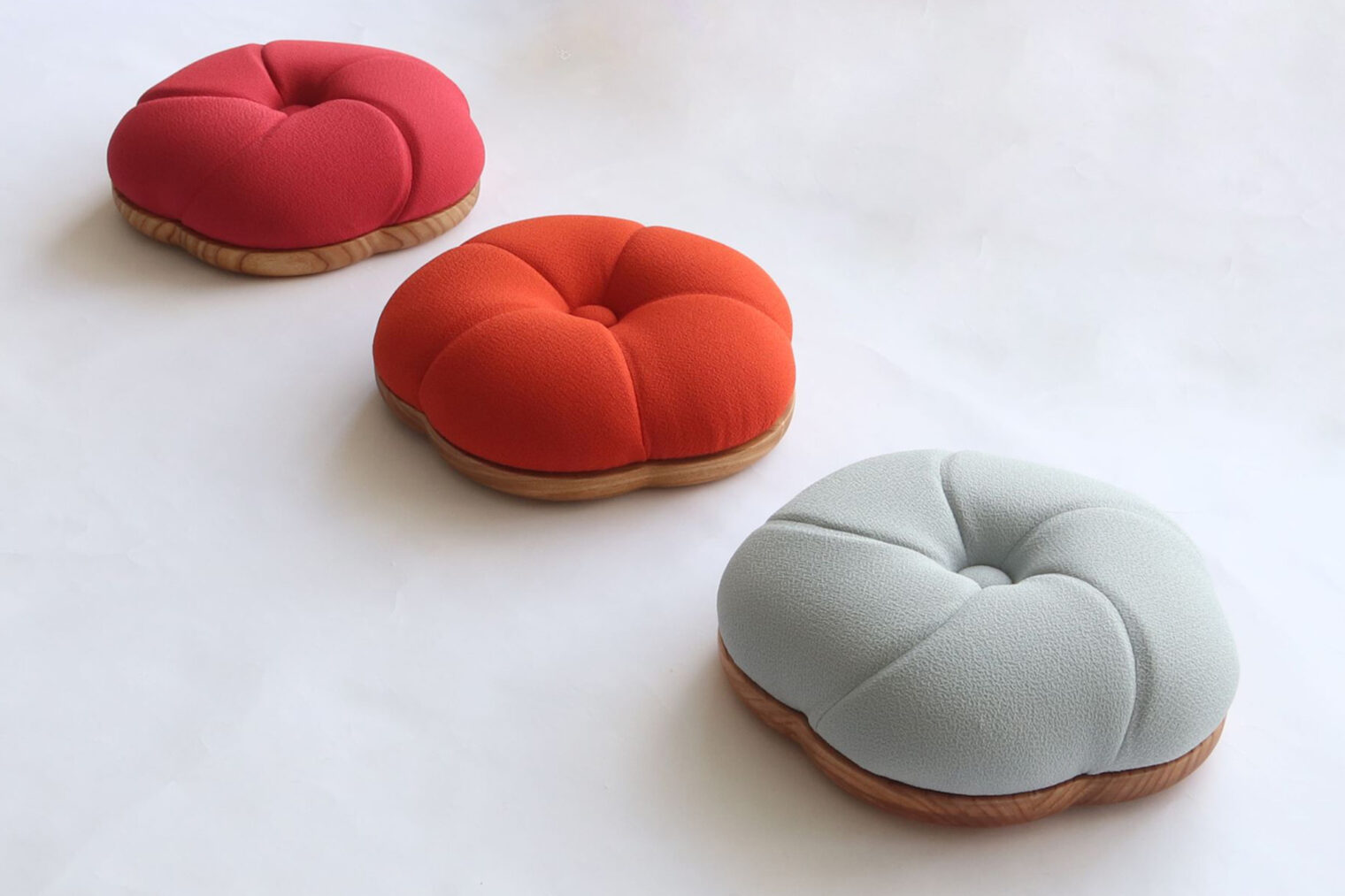 カラフルなちりめん調生地が張られたクッションはふっくらとしていて座り心地も良く、低座の暮らしを楽にしてくれます。